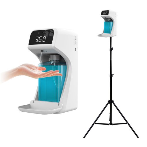 Máy xịt nước xà phòng thông minh F12 với thiết kế thông minh bình chứa dung dịch phía dưới giúp người dùng dễ dàng kiểm tra, bổ sung dung dịch khi cần tránh được những hư hỏng do châm nước như các dòng máy khác, cảm biến đo thân nhiệt ở trán tăng khả năng đo chín xác nhiệt độ cơ thể.